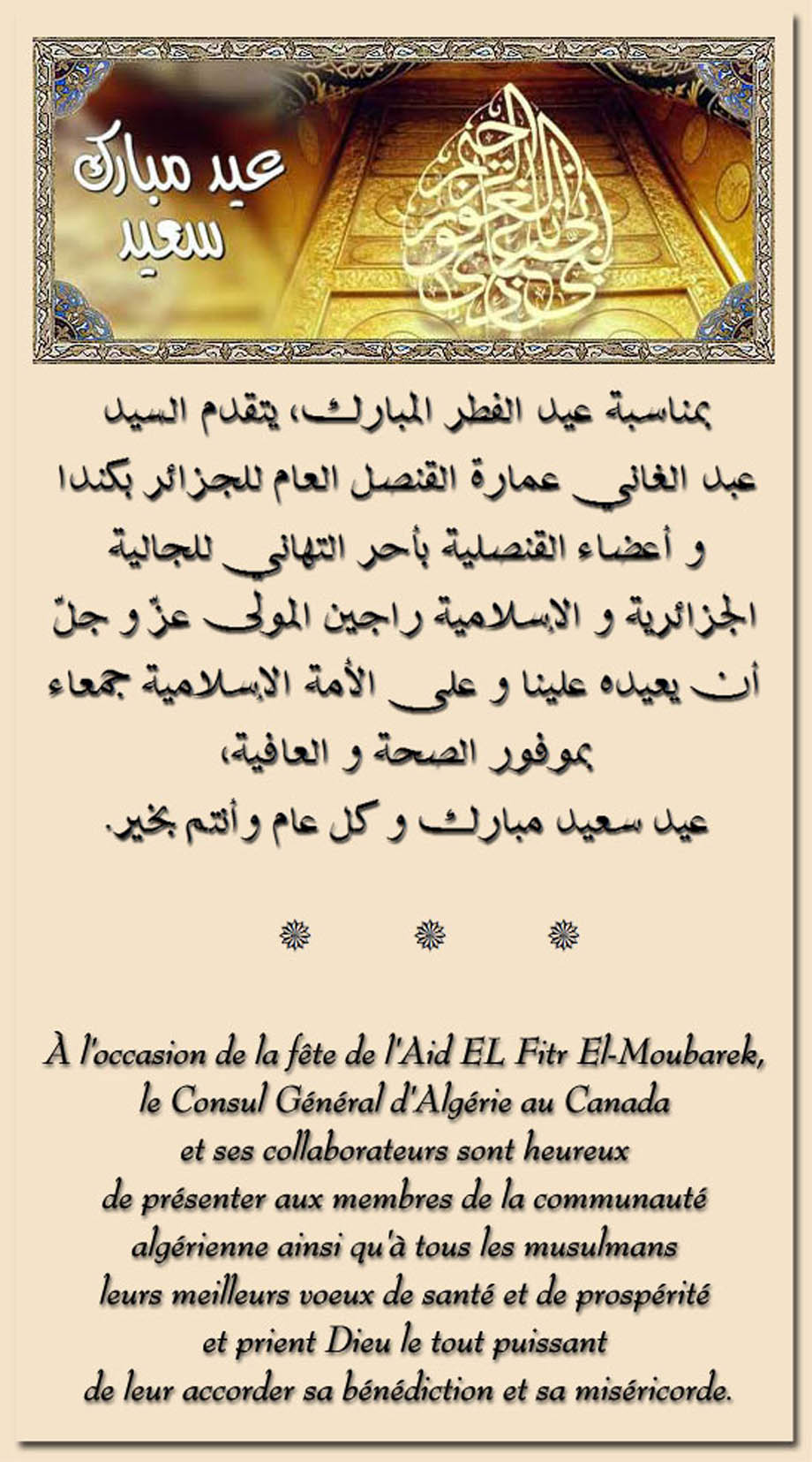 Voeux de Mr le Consul Général Voeux: De Mr le Consul Général d'Algérie à Montréal Article précédent : Décès Précédent Article suivant : Avis de décès Ouzaghla Sofiane Suivant