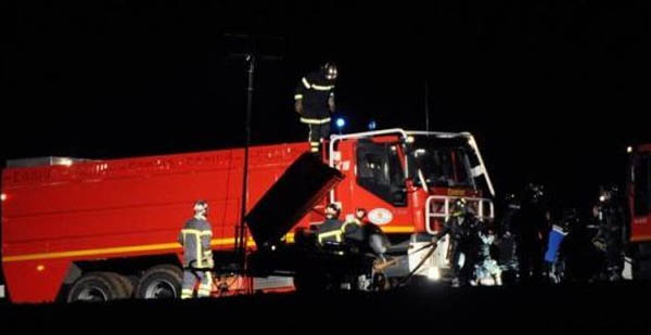 L'avion s'est écrasé à proximité du village de Trélans, dans un champ situé dans une zone escarpée, à la limite entre la Lozère et l'Aveyron. Quelque 90 pompiers venus de ces deux départements sont arrivés rapidement sur les lieux. Mais l'incendie de l'avion n'a pu être circonscrit qu'au bout de plusieurs heures. Un des corps a été découvert dans le poste de pilotage et trois autres dans la carlingue disloquée du cargo.
