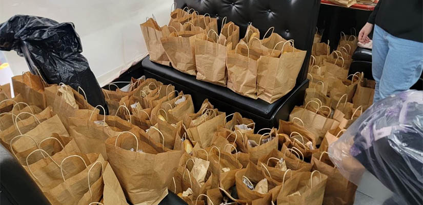 Sur TikTok, une vidéo qui compte près de 27 000 visionnements montre une longue file — qui fait le tour du quadrilatère! — de personnes qui attendent leur tour pour prendre les sacs-repas préparés par les bénévoles.