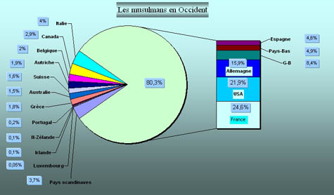 L’Islam est la seconde religion la plus pratiquée dans le monde après le Christianisme. Elle regroupe environ 1,2 milliard de fidèles principalement en Asie, en Afrique et en Europe. Il est très difficile de connaître précisément le nombre de musulmans en Occident, mais des estimations sérieuses peuvent le chiffrer aux alentours d’une vingtaine de millions très inégalement répartis à travers ses pays membres [1-7]. Ainsi, on remarque que quatre pays, en l’occurrence la France, les Etats-Unis, l’Allemagne et la Grande-Bretagne, regroupent plus des deux tiers des musulmans d’Occident. Le reste est disséminé dans les autres pays (fig.1).