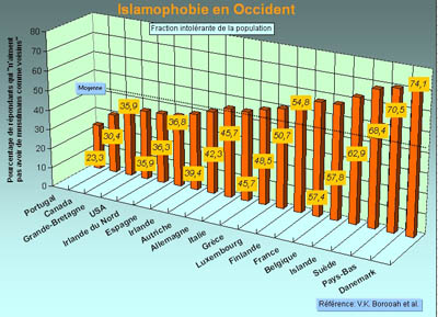 Fig.2 : Pourcentage de personnes (de la population en général) qui « n’aiment pas avoir de musulmans comme voisins » [9]