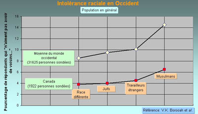 Fig.4 : Comparaison entre l’intolérance au Canada et la moyenne du monde occidental [9]