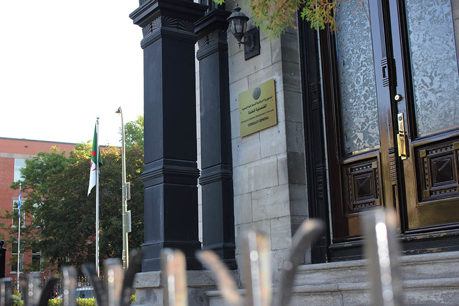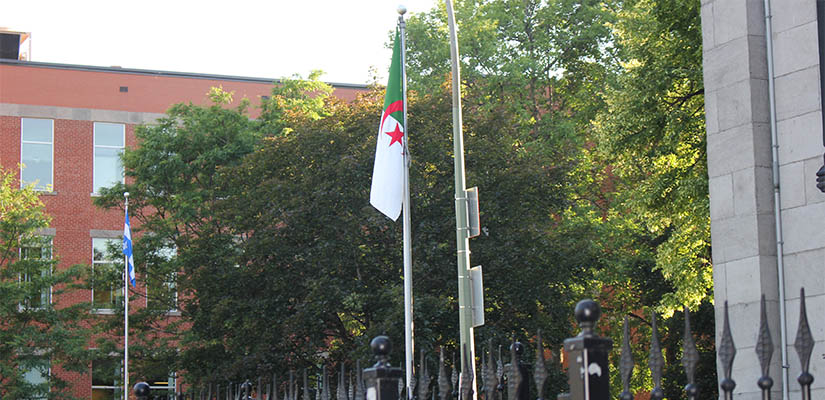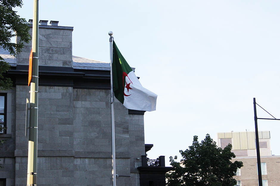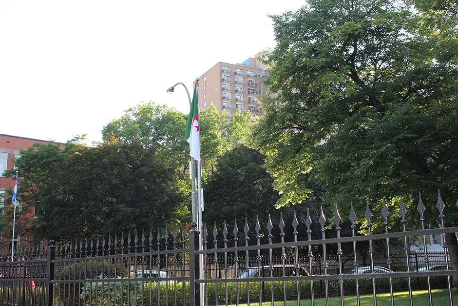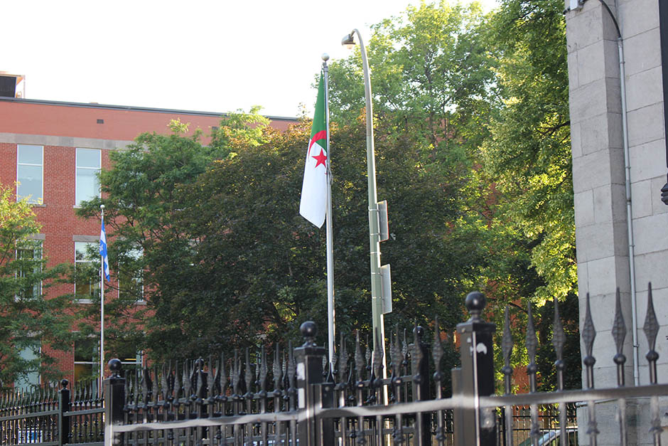 Pour marquer ma fête nationale, et comme à chaque année, j'accroche mes drapeaux d'Algérie sur les fenêtres de ma voiturette. Cette fois-ci, je me suis demandé pourquoi ne pas passer au consulat d'Algérie à Montréal pour la levée du drapeau. Ça a été fait le 4 juillet 2012 19h00, qui concorde à minuit en Algérie.