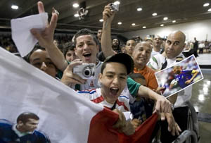 Le bain de foule de Zinédine n'aura pas duré plus d'une demi-heure et, pressé par un horaire réglé au quart de tour, il n'aura même pas eu le temps de répondre à la dizaine de questions que des enfants avaient préparées pour lui. La sonorité de l'aréna était du reste très mauvaise et l'on avait du mal à comprendre ses propos. Quant à ceux des dignitaires, dont le maire de l'arrondissement, Marcel Parent, ils ont été complètement enterrés par les cris des jeunes qui réclamaient toujours plus de Zidane.