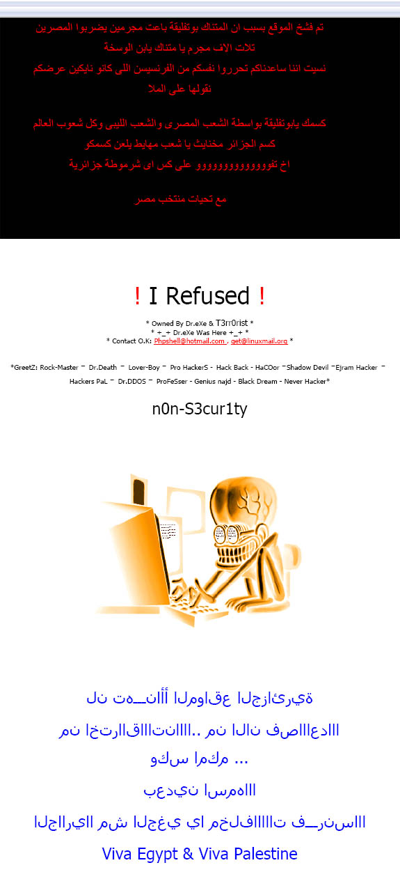 Le site internet a été hacké par deux fois hier soir après la qualification de l'équipe nationale algerienne pour le mondial 2010.